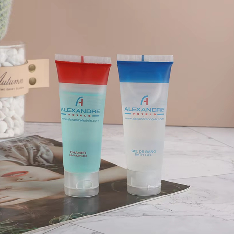 プラスチックボトルホテルアメニティセットカスタマイズ可能なカスタマイズ可能なデザインのカスタマイズ可能なバスゲルとシャンプーOEMカスタマイズ50ml